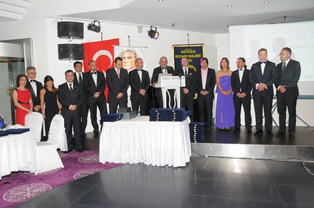 Dönem boyunca yapılan projelerin, konuklarla paylaşıldığı Devir Teslim Töreni, yıl boyunca toplantı ve projelere katılarak Seyhan Rotary’ye katkılarını esirgemeyen üyelerimize verilen ödüllerle devam etti. Fikir babasının dönem başkanı Emre Toğrul olduğundan şüphelendiğimiz –hatta emin olduğumuz- şapka formatındaki ödüllerin, tabir-i caizse taşı gediğine oturttuğuna tanık olduk. İnce işlenmiş mizah ürünü olduğunu düşündüğümüz bu şapkaların, gecenin yıldızı olduğu ve tarihe geçtiğini de söylemeden edemeyeceğiz.