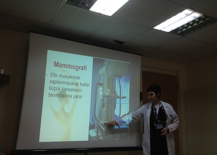 Ketem (Kanser Erken Teşhis ve Tarama Merkezi )’de Dr. Ömür Kahraman ve Dr. Nilgün Kocabıyık’ın gözetiminde yapılan meme kanserinde Erken Tanı Hayat Kurtarır Projesi’nde ki derslere aralıksız devam ediliyor. Proje’nin adından da anlayacağınız üzere daha çok kadınlara yönelik (her 8 kadından birinde mutlaka görülen ) olan meme kanserinde erken teşhis için genç kızlarımıza kendi kendilerini nasıl muayene edecekleri , 40 yasından itibaren kadınlarımızın mamografi muayenesinin yapılması gerektiği konusunda teorik ve meme maketleri ile birebir uygulamalı dersler veriliyor. Her geçen gün merkezde yapılan derslere ilgi ve daha fazla katılım devam ederken , Ketem ‘de ayrıca diğer kanser türleriyle ilgili de gerekli teshis , tedavi ve eğitim yöntemleri arastırılıp, hastalara ve potansiyel hasta adaylarına anlatılmakta.