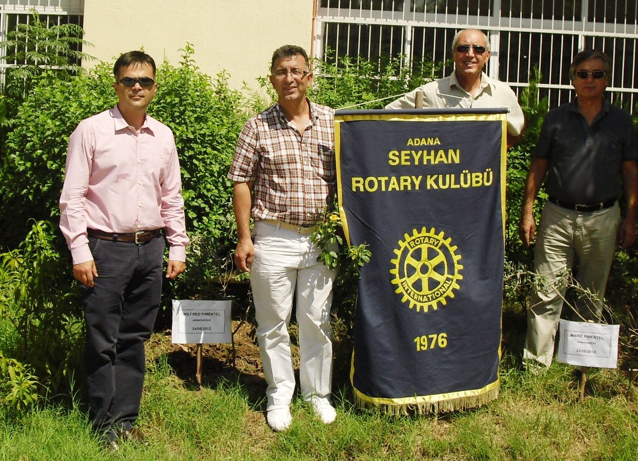 Marie-Wilfred Pimentel çitftinin evliliklerinin 60. Yıl dönümünün kutlandığı 24.08.2012 tarihi anısına, Türk, Adana ve Seyhan Rotary sevdalısı, birçok projemizde desteklerini gördüğümüz iki değerli insana şükranlarımızı iletmek adına GDB Abdullah Paksoy, GDB Bülent Akyürekli, başkanımız Cenk Uğurses ve Seyhan Rotary Anadolu Lisesi Müdürü Sn.Necdet Akdeniz’in katılımı ile iki Gemlik zeytini fidanı dikildi. Yan yana dikilen zeytin fidanları Marie-Wilfred çiftinin aşklarını, Seyhan Rotary – Fresno Rotary Kulüplerinin ve Türk-Amerikan halkının dostluğunu simgeleyecekler.