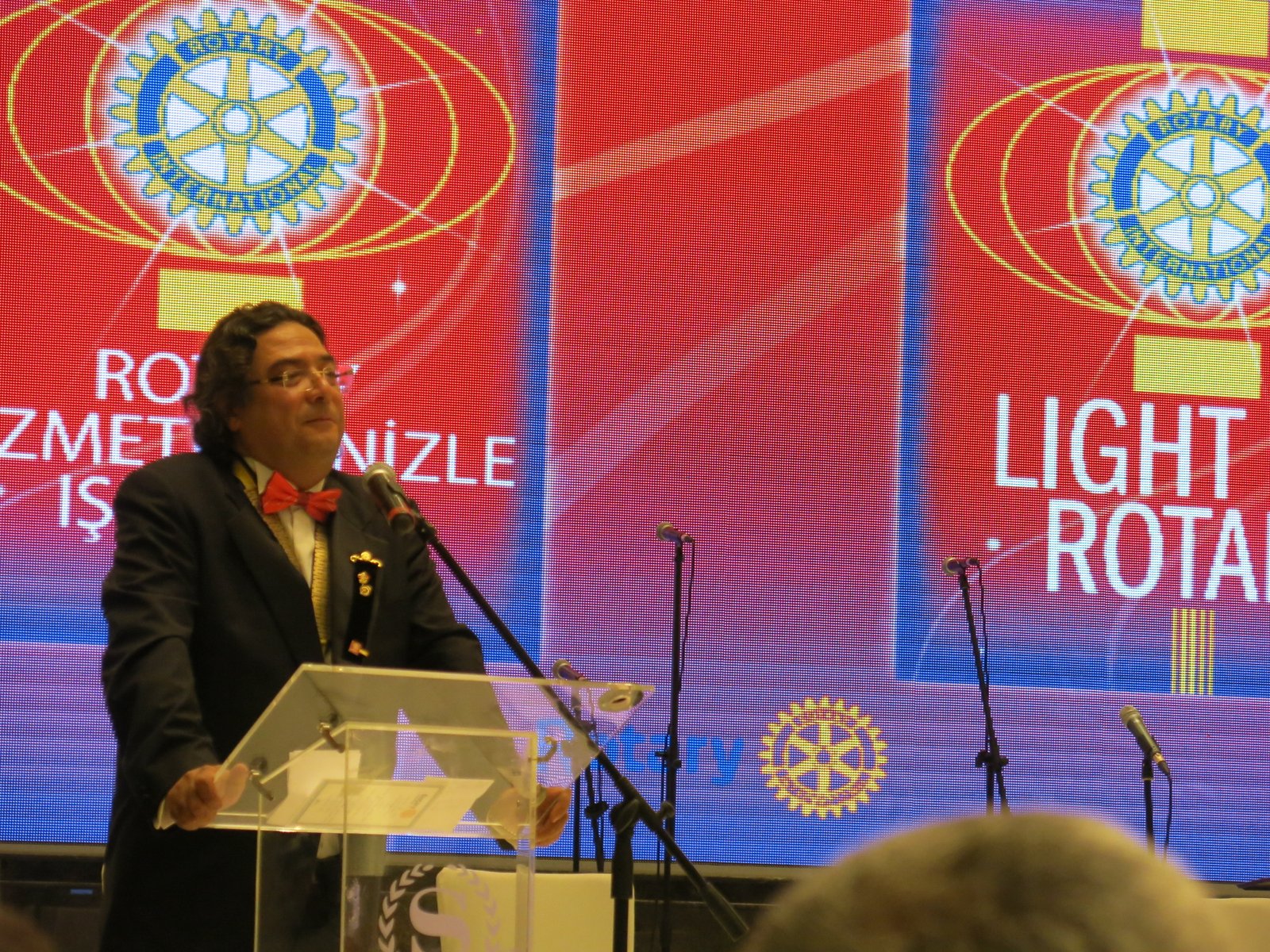 Rotary Günü etkinliklerinin yapıldığı günün gecesinde kulübümüze katılan iki yeni üyemiz; Zeki Aydın ve Akın Topal'a rozetlerini Dünya Rotary Başkanı Gary C.K Huang takmıştır.